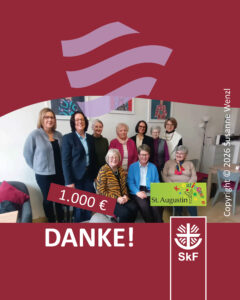 SkF Ingolstadt freut sich über Spende des KKV-Hansa20.01.2026Die Ortsgemeinschaft Ingolstadt des KKV-Hansa (Verband der Katholiken in Wirtschaft und Verwaltung) hat auch zu Beginn dieses Jahres Spenden an gemeinnützige Einrichtungen verteilt. Von den insgesamt 6.000 € gingen diesmal 1.500 € an den SkF Ingolstadt. SkF Vereinsvorsitzende Ursula Schmidt bedankte sich ganz herzlich für die großzügige Unterstützung (im Bild von links): Prof. Georg Steiner […]