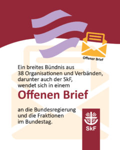 Ein breites Bündnis aus 38 Organisationen und Verbänden, darunter auch der SkF, wendet sich in einem Offenen Brief an die Bundesregierung und die Fraktionen im Bundestag.