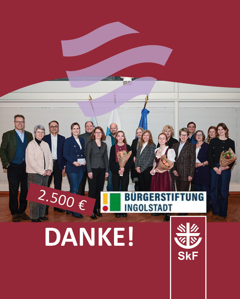 Der SkF Ingolstadt kann sich über eine großzügige Spende der Bürgerstiftung Ingolstadt in Höhe von 2500 € freuen.