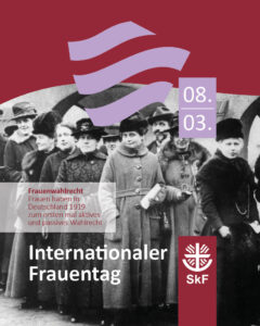 Internationaler Weltfrauentag Datum: 05.03.2026 Kategorie: Allgemein Agnes Neuhaus: Gründerin des SkF und einer der ersten Frauen im deutschen Reichstag 1919. Frauenwahlrecht: Frauen haben in Deutschland 1919 zum ersten mal aktives und passives Wahlrecht. Geben Sie Frauen Ihre Stimme. Bayerische Kommunalwahl 2026.