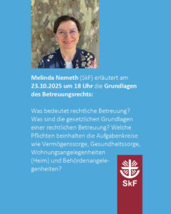 Melinda Nemeth (SkF) erläutert am 23.10.2025 um 18 Uhr die Grundlagen des Betreuungsrechts: