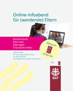 Die Schwangerschaftsberatung des Sozialdienstes kath. Frauen (SkF) veranstaltet am Mittwoch 28.01.26 um 19 Uhr wieder einen Online-Infoabend.